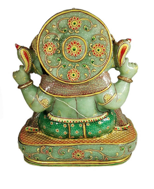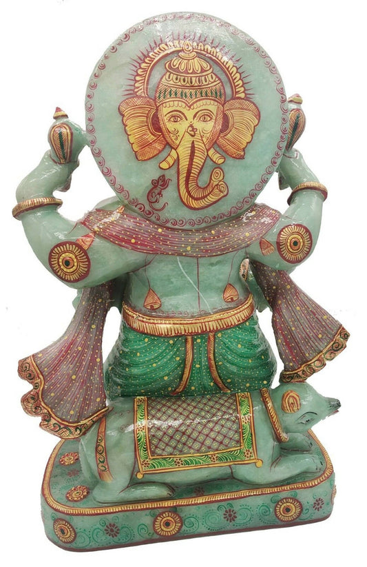 Jade Stone Ganesha statue 14" Aventurine Gemstone handmade painting Dancing Gift