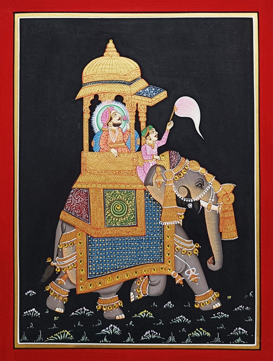Hand Painted Painting, Indian Maharaja Elephant Safari Painting, Wall Art, Folk Art