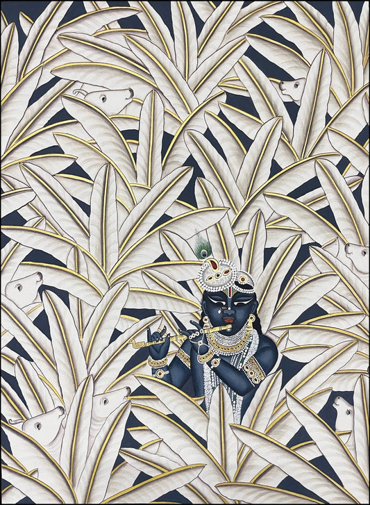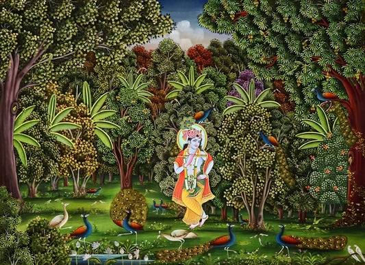 Krishna in Jungle - Handmade Pichwai Painting