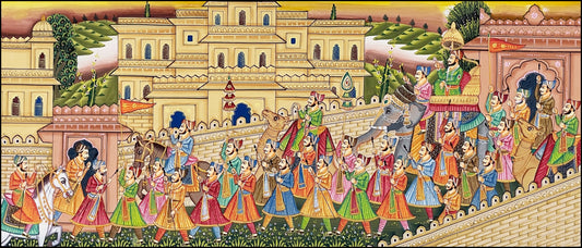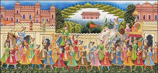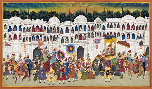 Royal Procession Large Detailed Hand Painted Artwork, Rajasthani Painting, Art and Collect, Home Decor, Wall Decor