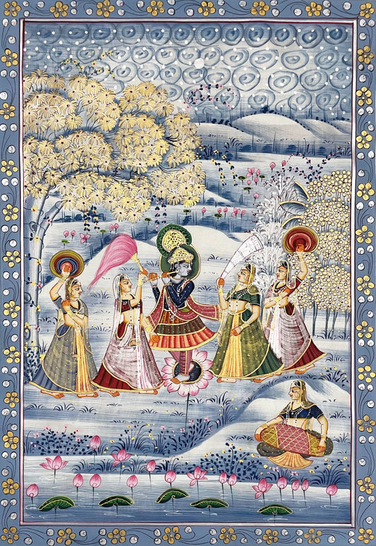Radha Krishna Detailed Pichwai Handmade Painting, Original Krishna Ras Leela Scene Wall Hanging Home Decorative Art