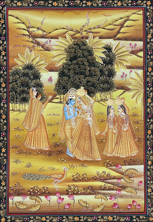 Radha Krishna Golden Detailed Pichwai Handmade Painting