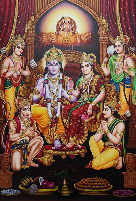 Ram Darbaar Oil Painting | Handmade Hindu Wall Art | Lord Ram Sita Lakshman Hanuman Canvas Painting
