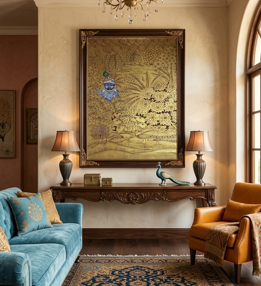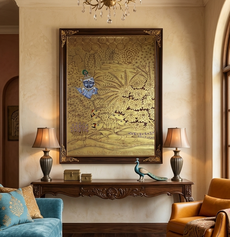 Krishna Pichwai Painting – Golden Handpainted Traditional Indian Art of Lord Krishna