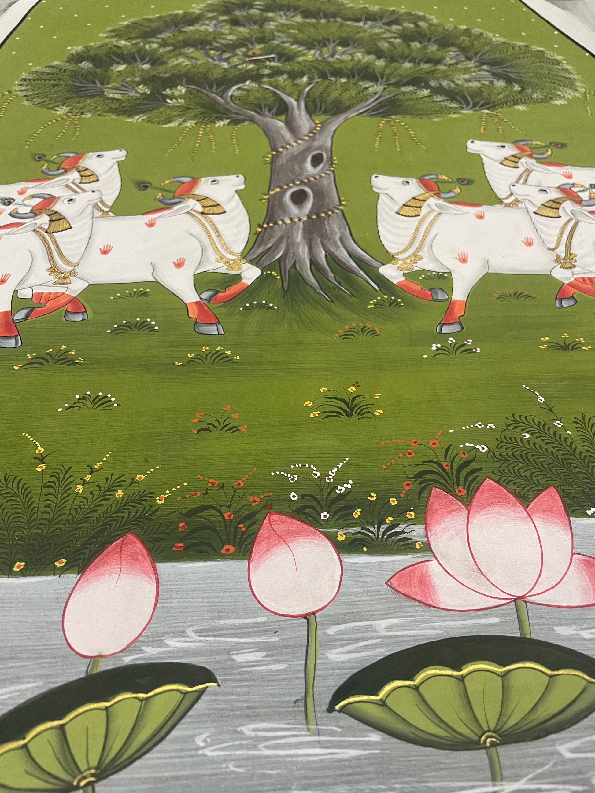 Pichwai Painting Of Cow, Modern Indian Pichwai Painting For Home Decor, Wall Hanging, Wall Painting