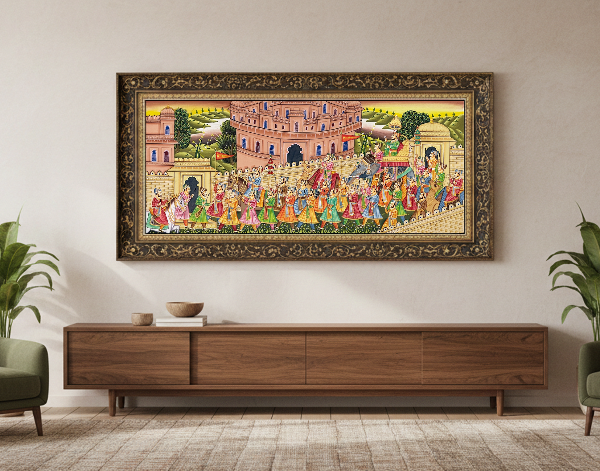 Royal Procession Large Detailed Hand Painted Artwork, Rajasthani Painting, Art and Collect, Home Decor, Wall Decor